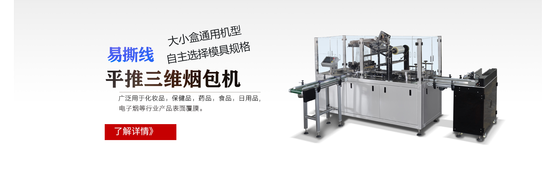 三維包裝機、封切包裝機、多功能封口機、真空包裝機、灌裝機、旋蓋機、貼標機